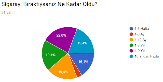 Herkese merhabalar. Sigarayı Bırakmak ile ilgili yazıyı yazdığımda bir anket başlatmıştım. Bu anketi sosyal medyadan da bir kaç kez paylaştım. 100 kişiyi geçtiğinde sonuçları paylaşacağımı söylemiştim. Şuanda 105 katılımcı oldu. Katılım sağlayan herkese çok teşekkür ederim. Bir sonraki hedefim 500 kişiye ulaşmak ve sonuçların daha güvenilir olmasını sağlamak. Bu doğrultuda, anketi sizde çevrenizdekiler ile paylaşırsanız çok mutlu olurum.